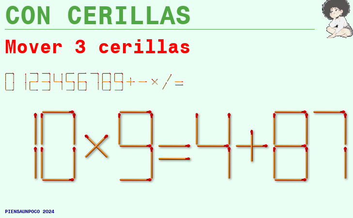 Aparecen en la imagen 4 operaciones. A un lado de la igualdad tenemos dos números que operados entre sí dan como resultado el segundo término de la igualdad. Todo consiste en encontrar qué operación se ha realizado y averiguar el resultado de la cuarta igualdad.