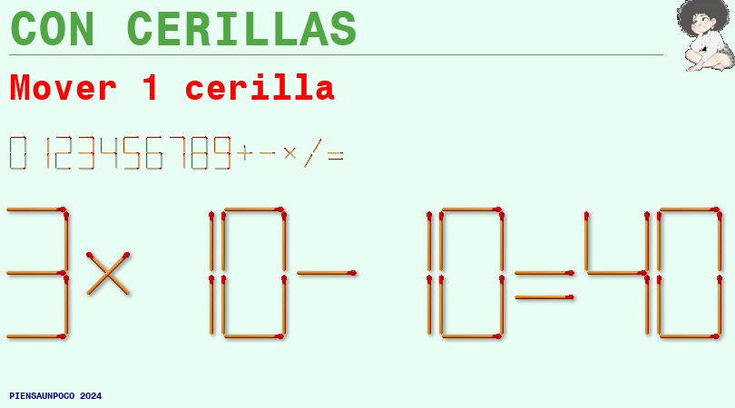Aparecen en la imagen 4 operaciones. A un lado de la igualdad tenemos dos números que operados entre sí dan como resultado el segundo término de la igualdad. Todo consiste en encontrar qué operación se ha realizado y averiguar el resultado de la cuarta igualdad.